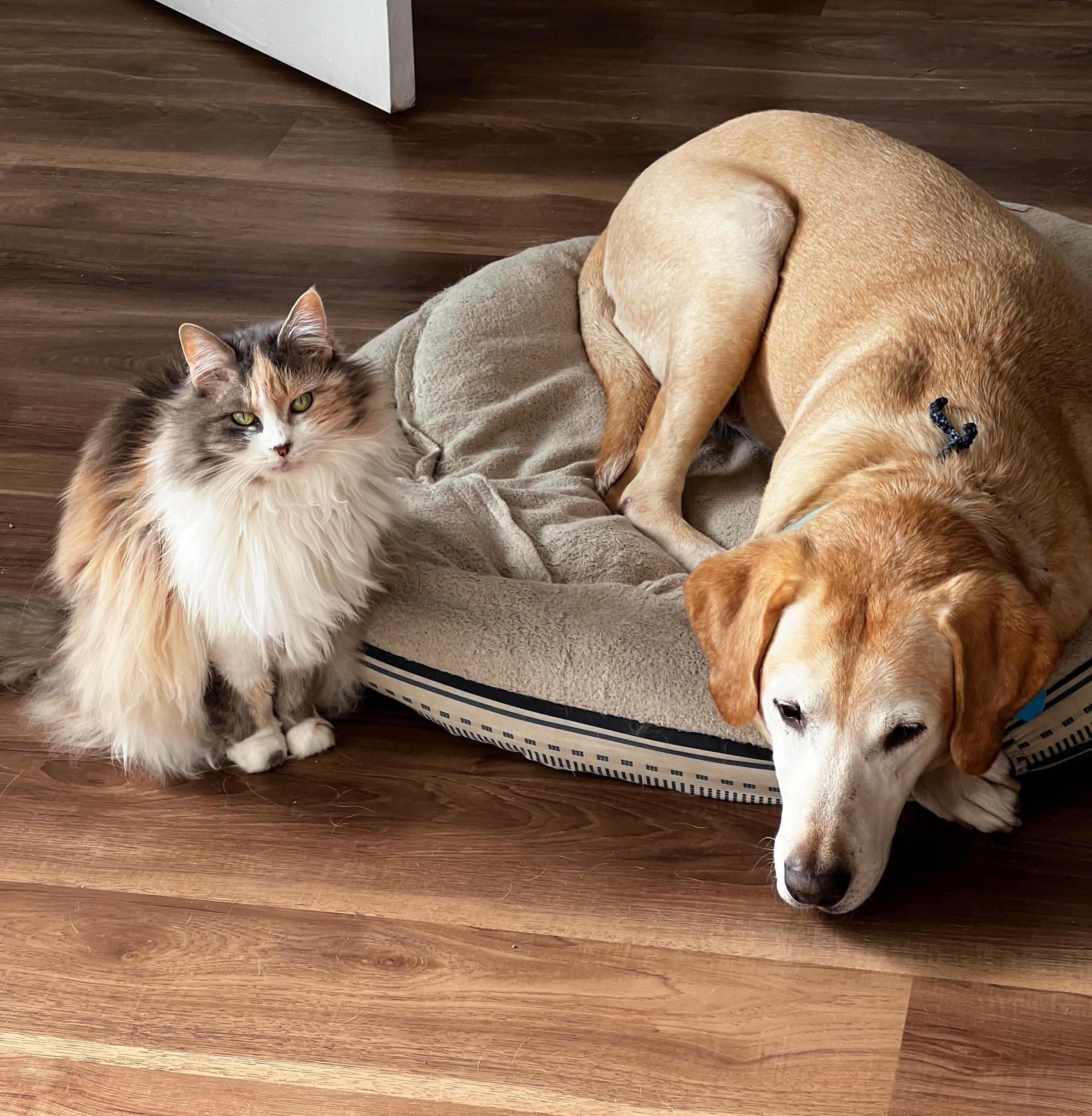 i'm married to my favorite person in the whole world, william, and we have a dog named hank and a kitty named jinx.